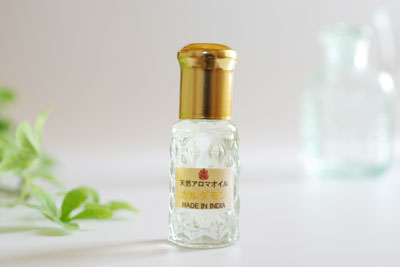 ※現在、アロマオイルのボトルには、日本製の茶色の遮光瓶を使用しておりますので、お届けするアロマオイルのボトルは、写真の画像のインド製ボトルとは異なります。