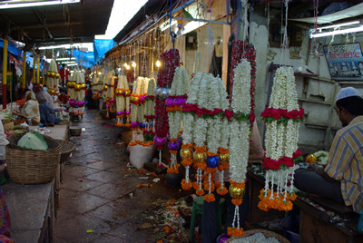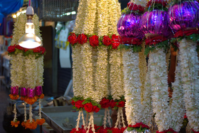 市場の通りは花飾り屋さんがいっぱい。良い香りにつつまれます。