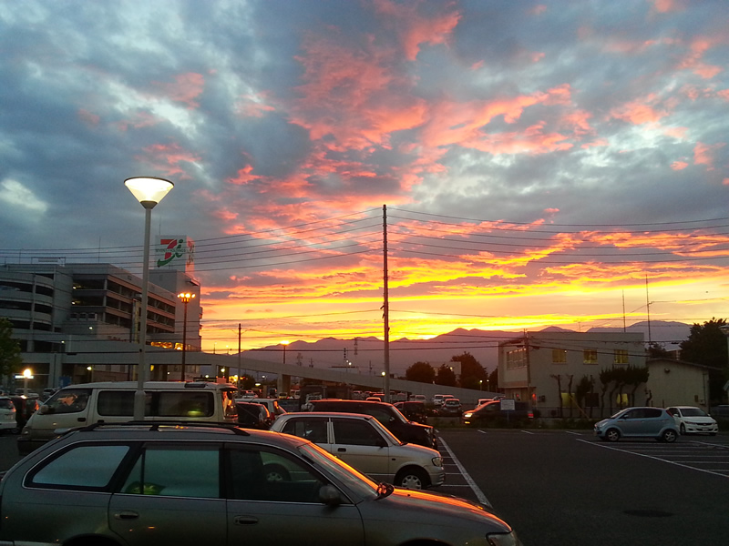 投稿日: 2012年9月4日2020年1月4日 投稿者: てんちょー夕焼け 夕方買い物に行って駐車場に車を止め、ふと西の空を見たらすごい黄色~オレンジ色の空になってました。 その後しばらく眺めていたら、刻々と空の色が変わっていきました。 こんなに焼けた空を見たのはひさびさです。