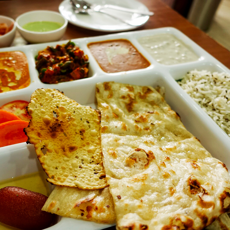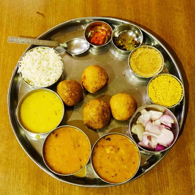 スープカレーと麦こがしのようなお団子。ジャイプールの気候に合っているお料理とのことです。