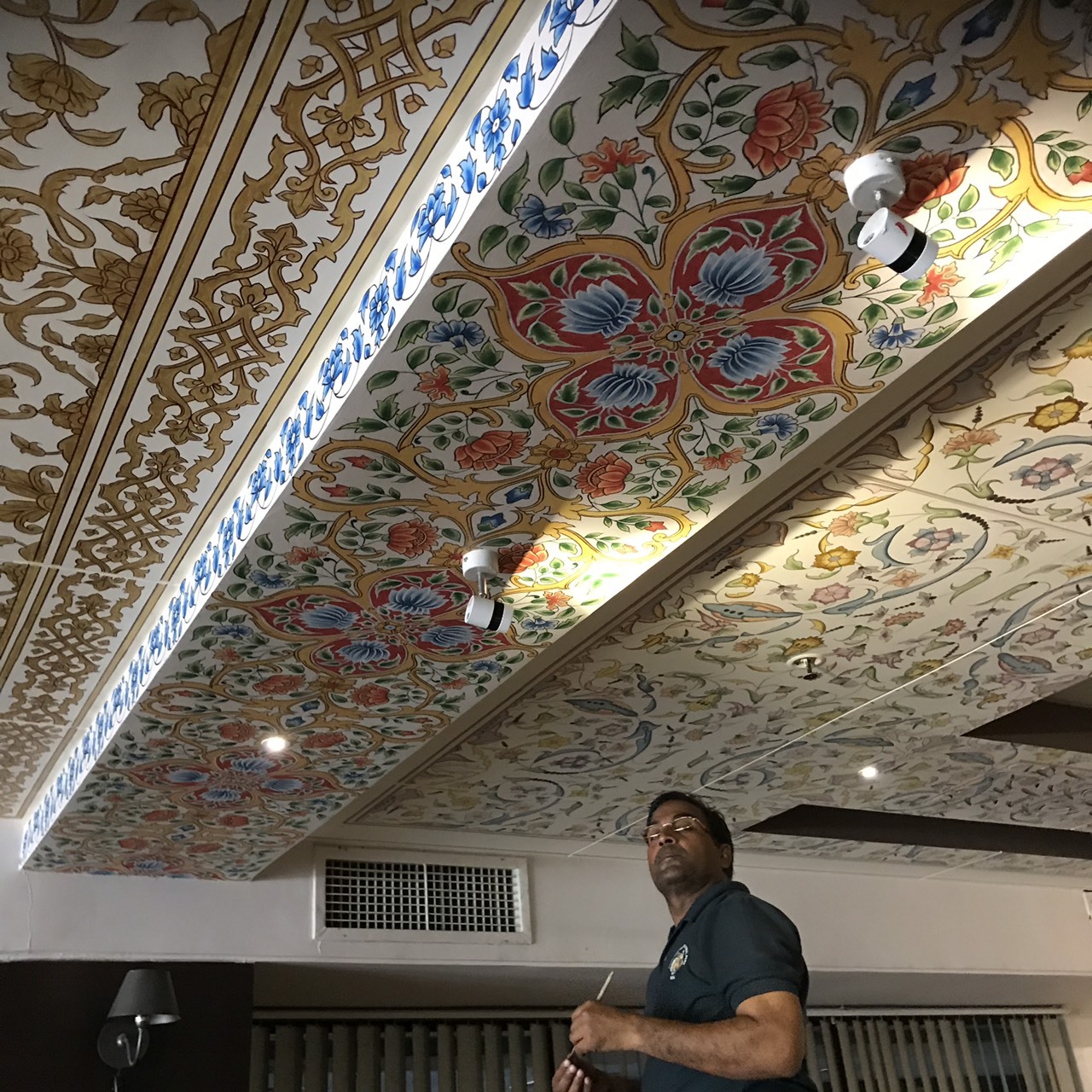 天井に手書きのアート作品製作中に遭遇。すごい!