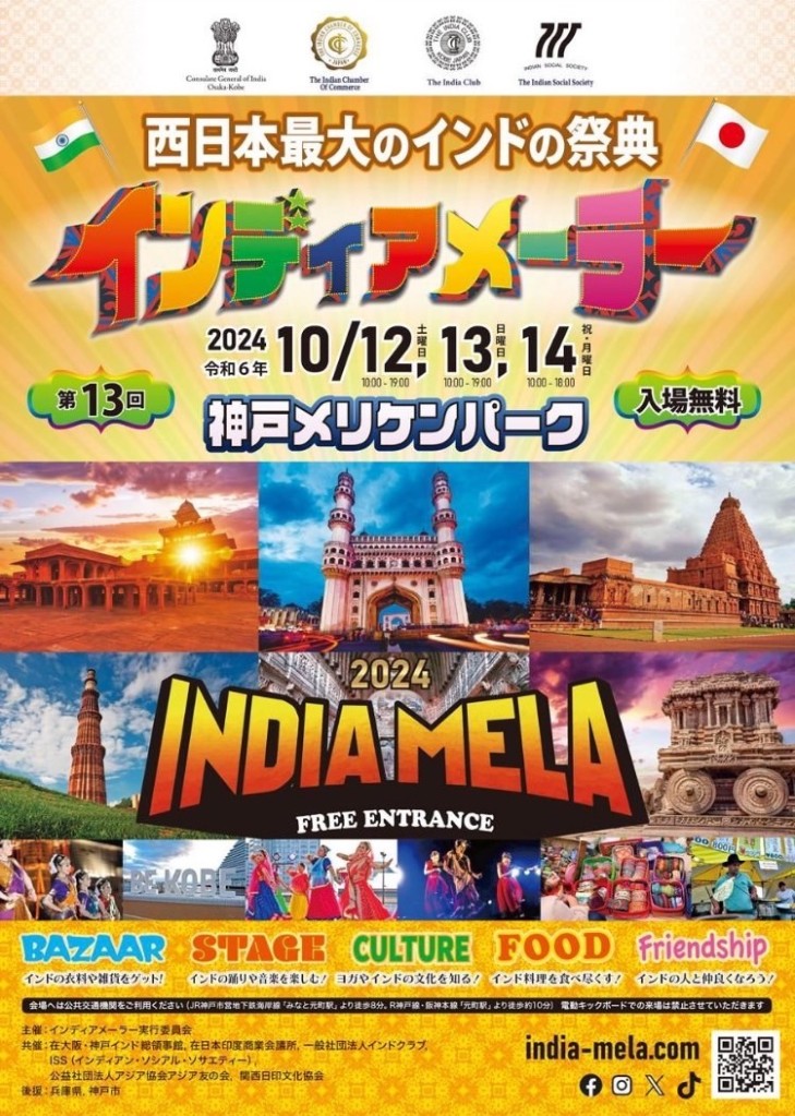 投稿日: 2024年10月2日2024年10月3日 投稿者: てんちょーインディアメーラー出店します♪ 神戸メリケンパークで行われるインドイベント『インディアメーラー』に出店いたします♪印度良品としてなんと8年ぶりに参加させていただきます。お近くの方、ご興味のおありの方、ぜひぜひ遊びに来てください。