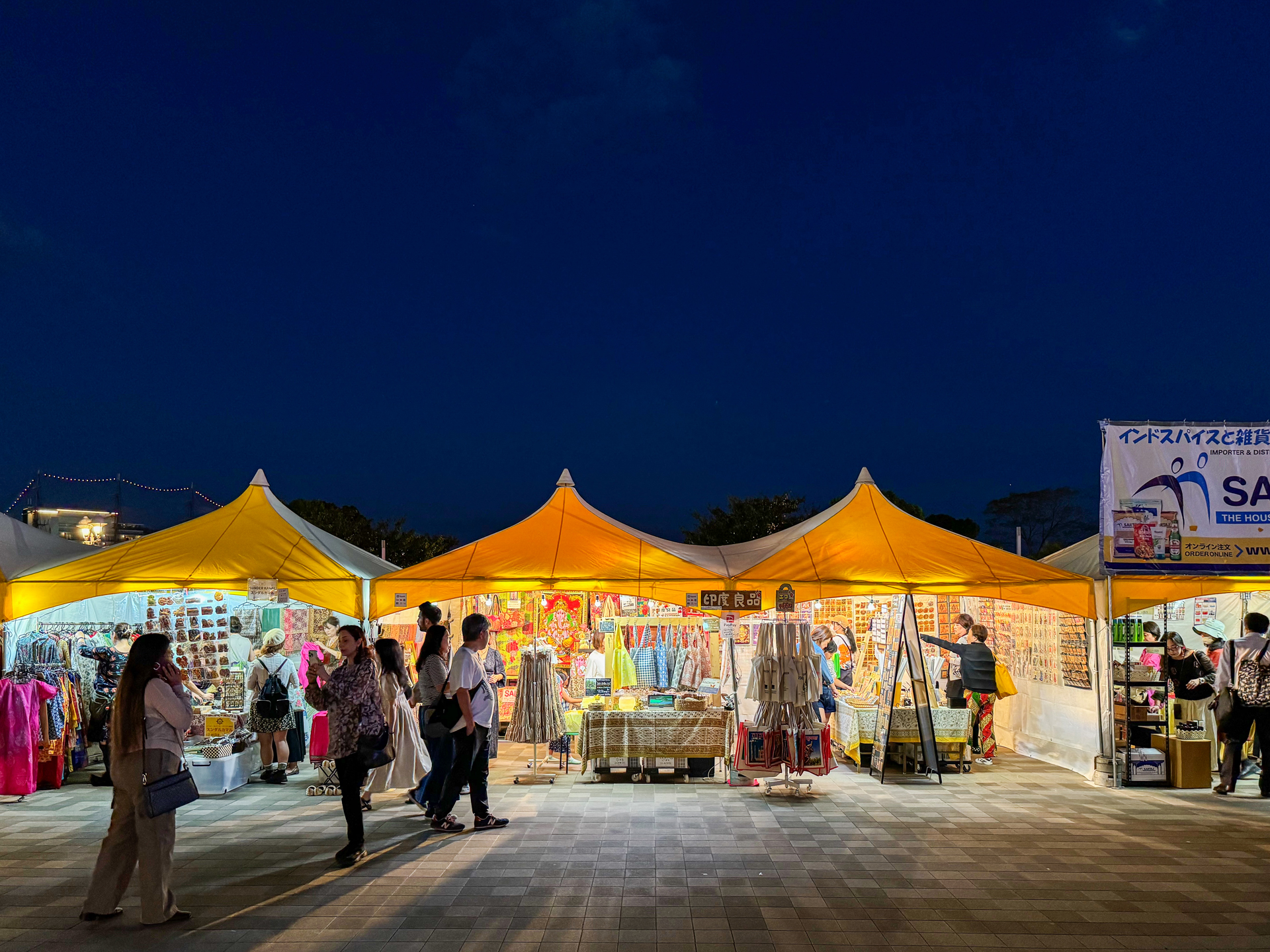 投稿日: 2024年10月16日2024年10月18日 投稿者: てんちょーインディアメーラー in 神戸 終了しました♪ 神戸メリケンパークで、3日間開催されたインドフェスティバル『インディア・メーラー2024』おかげさまで、良いお天気(暑かった〜💦)に恵まれ、無事終了しました。関西のお客様にも大変お世話になりました!ありがとうございました🙏又来年、機会がございましたら、ぜひ遊びにお越しくださいませ。 夜の様子 ポートタワーのライトアップはじめ、ベイエリアの夜景はとても綺麗でした✨ がんばったご褒美スイーツ『マロンパフェ』 久しぶりの甘さがしみわたり、疲れも吹っ飛んだ〜😊