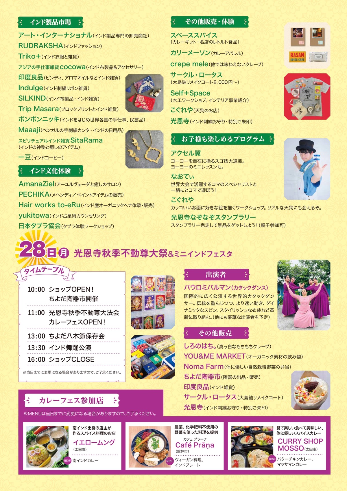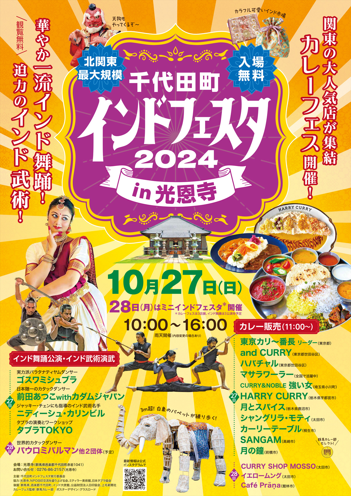 投稿日: 2024年10月19日2024年10月19日 投稿者: てんちょーインドフェスタ2024 in 千代田町(群馬) お隣の群馬県にある光恩寺さまで開催されるインドフェスタに、印度良品も出店させていただきます♪群馬の皆様、ぜひ遊びにお出かけくださいませ。