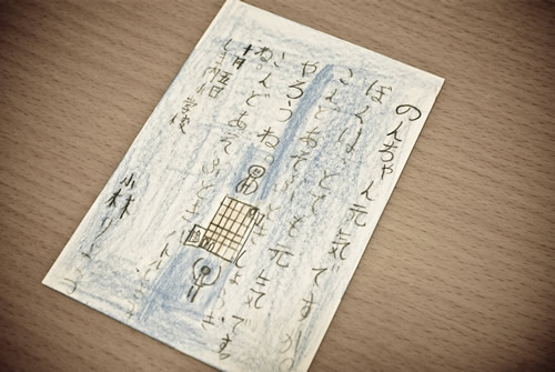 投稿日: 2010年10月8日2020年1月4日 (^.^) v 甥っ子(小2)からハガキが届きました。 社会見学で郵便局に行ってきたとのことでした。 ありがとねーーーっ(^。^)// ・・・それにしても、成長したなーとおばさんは嬉しく思うのでした。。。