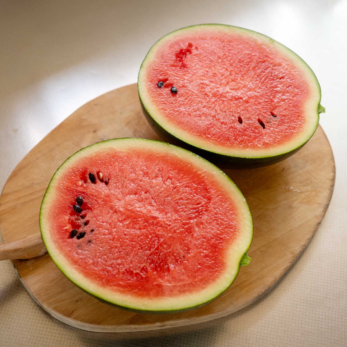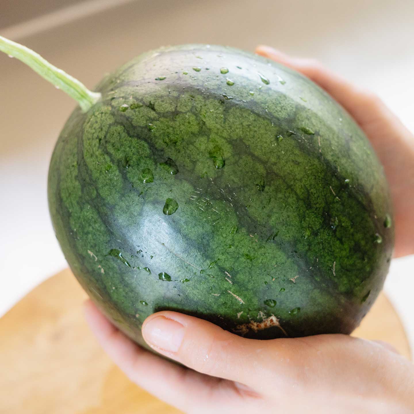 あと1週間くらいかなぁって思ってたけど、となりでスクスク育っていたスイカが、雨の影響もあってか残念なことにパーンと弾けて傷んでしまったので、慌てて他のスイカをチェックして、大丈夫そうなのを切ってみるかーと。