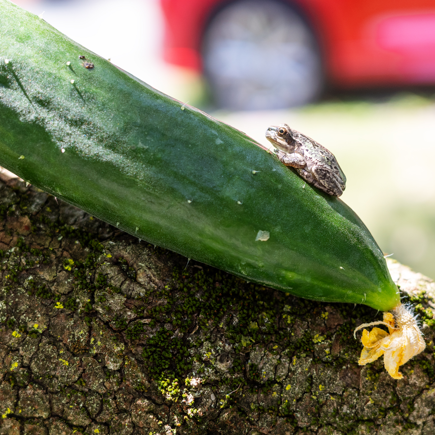 庭木にきゅうりが絡んで伸びていって、木のベッドですくすく成長中w