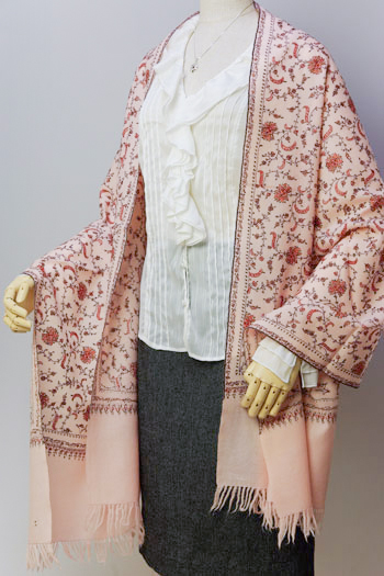 繊細で柔らかなカシミールウール(ヤギの毛)の生地に手針で細かく刺繍されたカシミールの伝統的な手針刺繍ストールです。