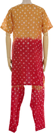 このタイプは、伝統的な絞り染め(タイダイ)の技法によって染められたパンジャビドレス(サルワール・カミーズ)です。