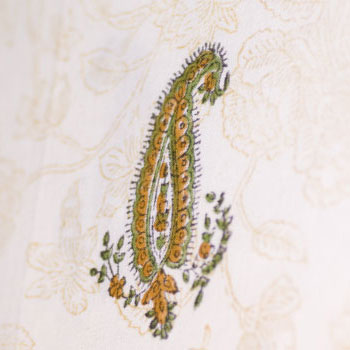 このテーブルクロスは、インド綿の生地に上品で繊細なデザインが何重にもブロックプリント(木版版画)された高級テーブルクロス(マルチカバー)です。