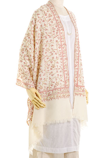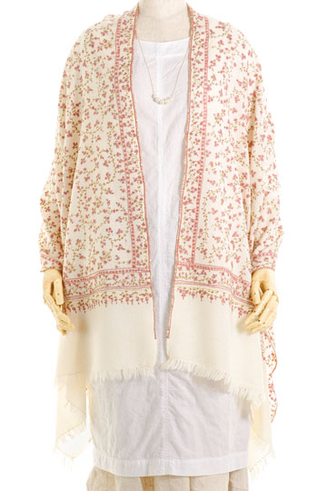 このカシミール刺繍ストールは、ジャリダールと呼ばれるタイプで、ストールの全体に刺繍が施されています。